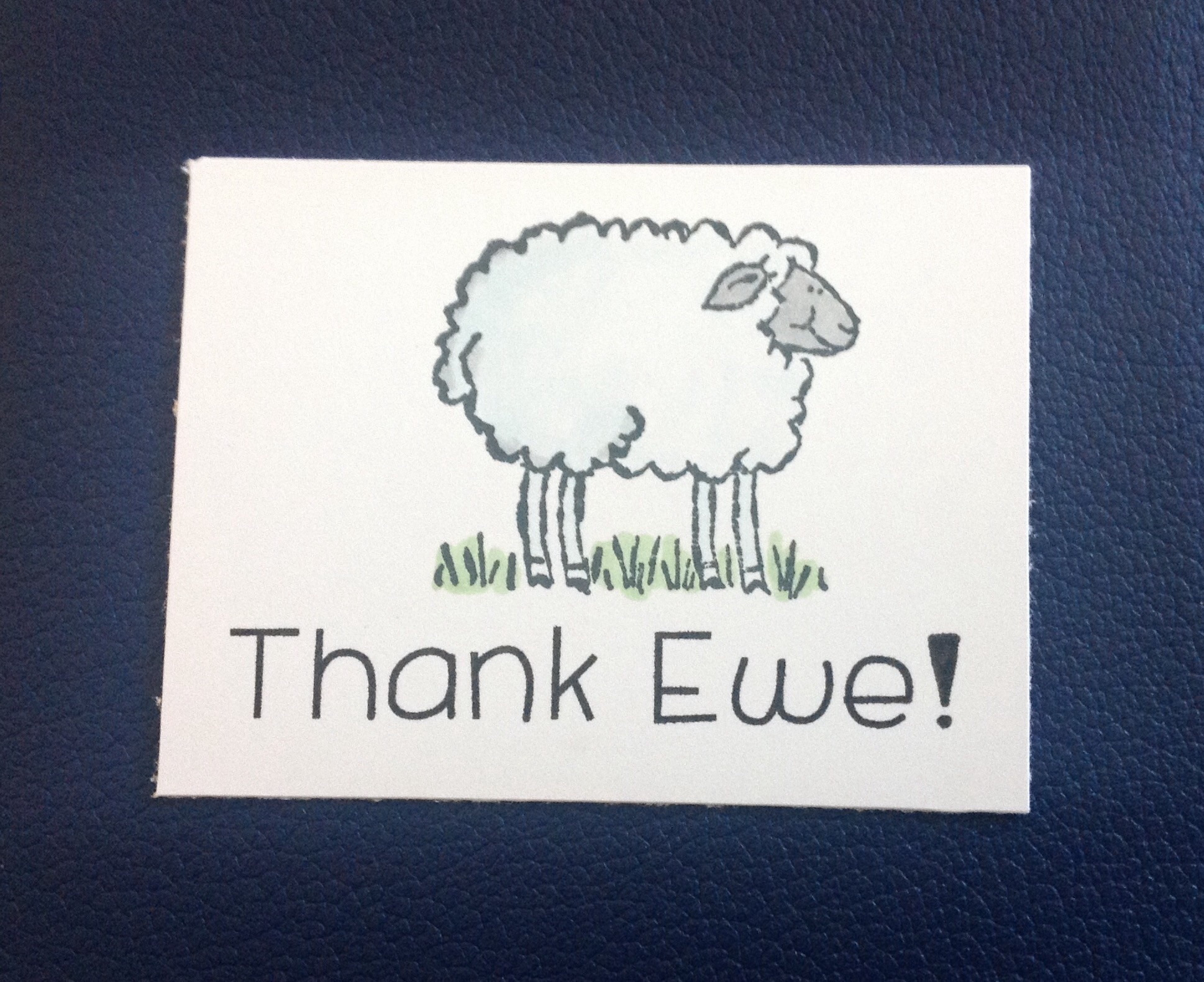 i was working on party favors for my friend’s son’s first birthday. They are having a farm themed party, so cute. The favors will be a small box filled with treats and toys. The boxes will have a little sheep on them with the sentiment “Thank Ewe!” Hoe cute is that!