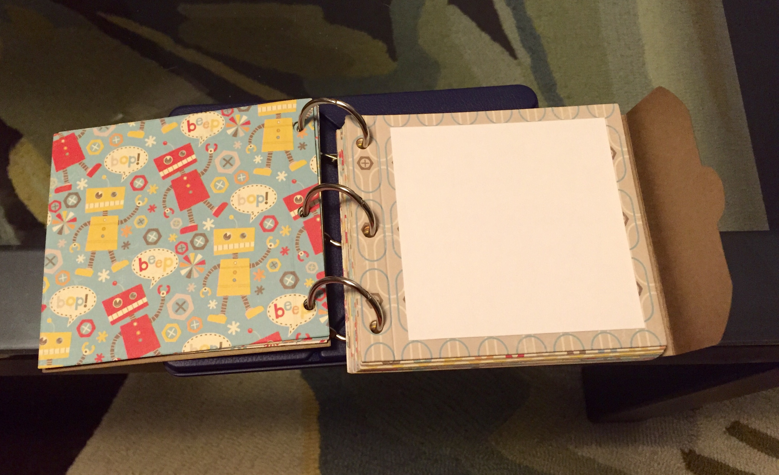 I did one crafty thing for the shower. I put together a mini album where each guest wrote a bit of advice then we added a picture. Here is what a blank page looked like.
