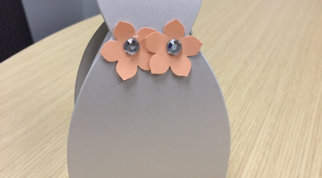 I was finally able to do something crafty this week. My friend’s daughter is getting married in May and her bridal shower is in a week and a half. For the shower my friend asked me to make favors, little wedding dress boxes. I gave her three options to choose from: